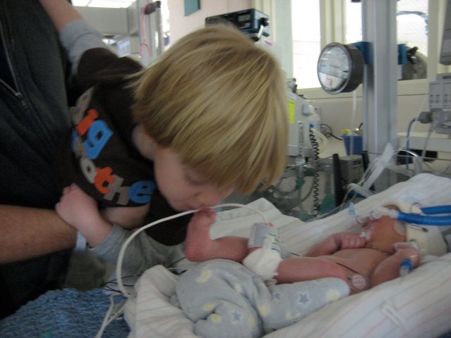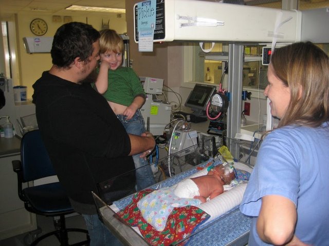 Since George was almost 7 weeks early, he had to spend some time in the neonatal intensive care unit at Seton. He had a few issues with breathing and heartrate drops, but he handled it all like a pro and gained weight each day. He was there for 30 days enduring lots of treatments, tests, and tubes. It was a real balancing act for our new little family of 4. We took turns, swapping kids for 6 hour shifts, logging hours a day pumping milk, and lots of time driving between home and the hospital. Henry was a trooper, and we all got through it the best we could. All four grandparents and lots of aunts and uncles helped make sure that someone was always there for the newest little pickle.