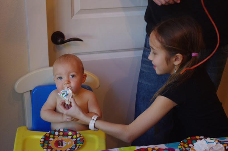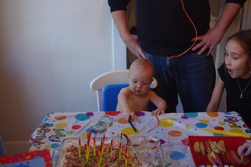 Though it seems to soon for it, our little George is now a full year old. We celebrated his birthday (and Dorie’s, of course) at Bliss and Minsok’s place, where George got his first good taste of cake and enjoyed plenty of attention. We also tested George in a traditional Korean fashion by having him predict his own future by choosing either a dollar bill (success in business), a pen (success as a scholar), or a piece of string (long life). Apparently, he’s entering academia, so he maybe should have at least held onto the dollar bill.