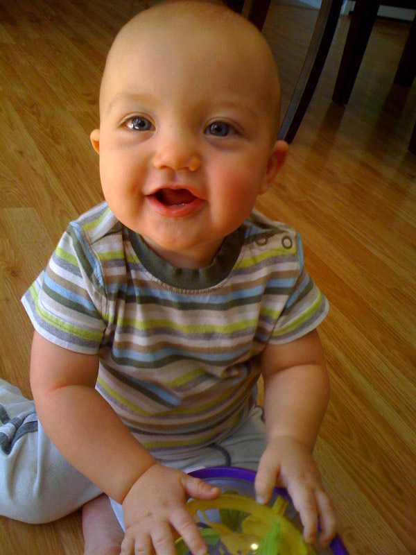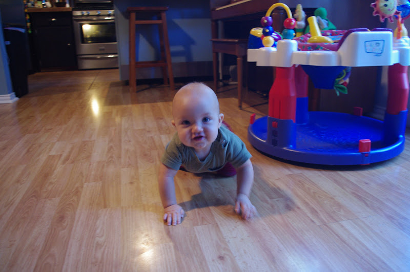 George is crawling, and into everybody’s business. He is systematically exploring the house and has learned to crawl, climb, and (briefly) stand.