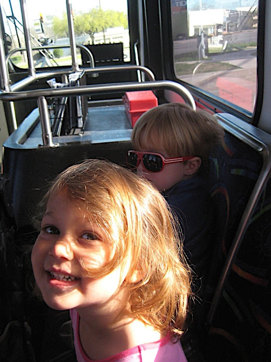 OK, maybe that’s overselling it a bit. But March has been a lot of fun. We’ve been spending a lot of time at the park, since the weather has finally turned nice. We also went to Milo Martin Rider’s birthday party, Fin Phillips’s birthday party, and took a trip to the Zilker Park Kite Festival with Adam and Eliana. Henry and Eliana had their first ride on a public bus, and were pretty excited about it. As we walked into the festival, I tried to get Henry to stand next to a police car for a picture, but he would have none of it. He told me: “Daddy, if I stand next to it, I’m afraid they will think I’m trouble and take me to jail.” Fair enough, son. Fair enough.