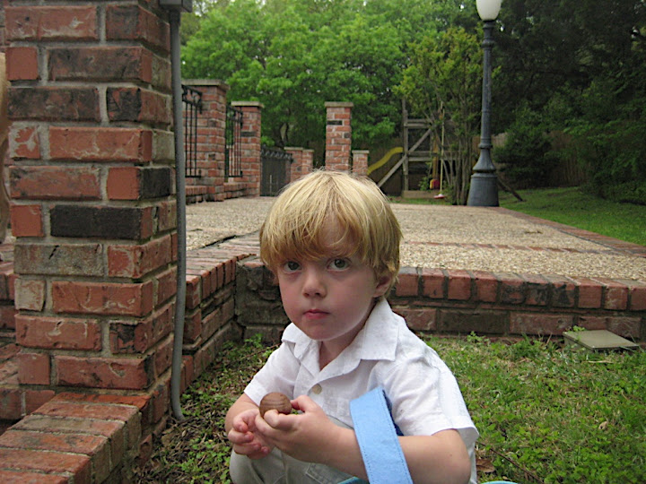 Spring is the time for a lot of great things here in Austin. The Greenbelt is actually green, it’s warm enough to splash in the kiddie pool, it’s great Easter-egg hunting weather, and, of course, it’s a great time to go to the carnival. So we did all of that stuff. It’s so nice, George even learned how to smile just so he could show us how much he digs it. Happy springtime everybody.